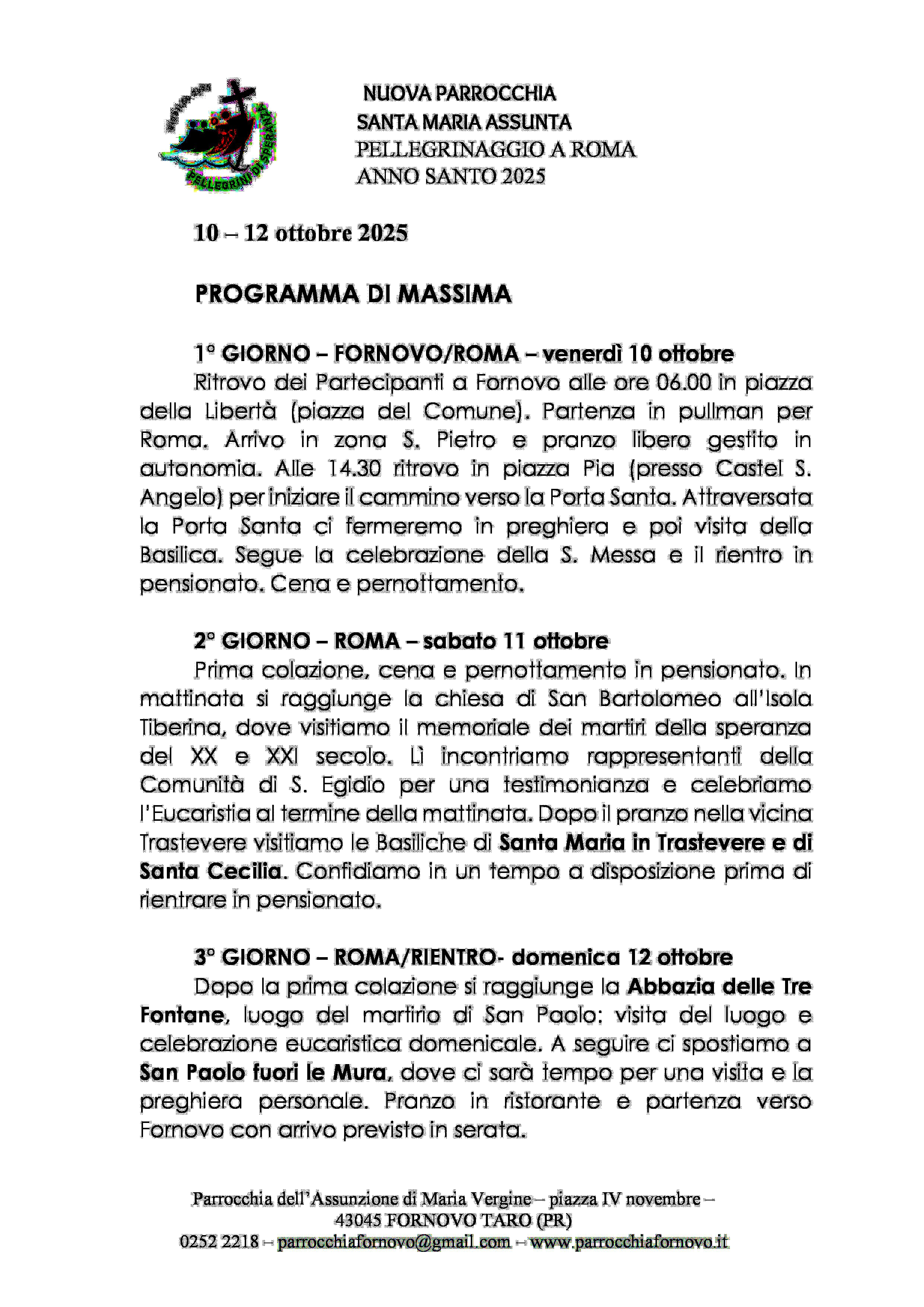 Parroco delle Parrocchie della Assunzione di Maria Vergine in Fornovo, San Giovanni Battista in Riccò-Vizzola, San Michele in Piantonia e Santa Maria Maddalena in Respiccio e Moderatore della Nuova Parrocchia n. 45 di Santa Maria Assunta.