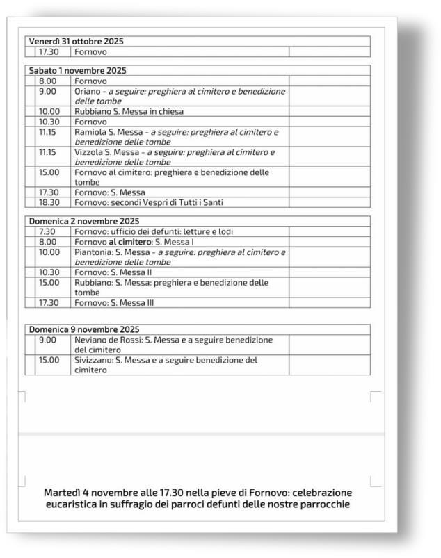 Solennità di Tutti i Santi Commemorazione dei Fedeli Defunti