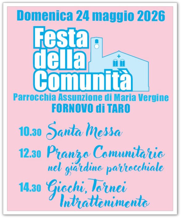 Sono aperte le iscrizioni alla Festa della Comunità che avrà luogo domenica 24 maggio in chiesa e negli spazi parrocchiali. Maggiori informazioni sul sito web e in parrocchia.